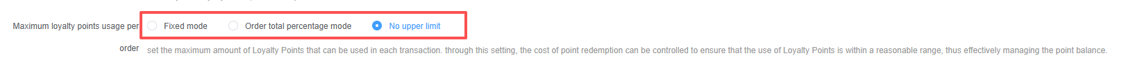 **此篇文档讲述消费积分获取的设置,并解释各配置项的含义** ## 操作流程 ### 1.获取 #### ①开启/关闭赠送 开启消费获取积分后,该订单的状态完成后,消费积分就会自动发放到支付的账户内  #### ②设置获取比例 填写,每消费$100可以获得XX消费积分(==只会发放商品价格部分的消费积分,服务费和GST的消费不会发放消费积分==)  #### ③余额付款设置 使用商业积分(账户充值余额)支付时,是否会进行赠送消费积分  ### 2.抵扣 #### ①开启/关闭抵扣 开启消费积分抵扣后,在支付时,可以选择是否使用消费积分来抵扣该订单总额  #### ②设置积分价值 填写,每100积分可以抵扣多少金额  #### ③最高使用比例 使用比例为‘固定模式’设置每笔订单最多使用多少积分;‘订单百分比模式’设置不同会员等级最多可以使用的比例;‘无上限’
