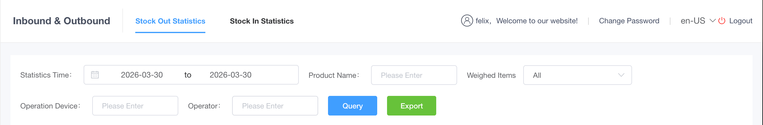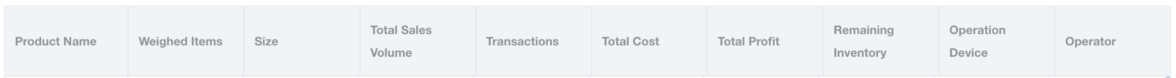 > The Stock Out Statistics tab provides a comprehensive view of all items deducted from inventory due to sales or other operations, including cost and profit analysis for the selected period. <br> 出库统计标签页提供因销售或其他操作而从库存中扣除的所有商品的全面视图,包含所选期间的成本和利润分析。 #### Filter & Action Area 筛选与操作区  * **Operation Guide**: Use the filters to specify a timeframe, product, or operator, and click "Query" to view the matching stock out records or "Export" for external reporting. <br> 使用筛选器指定时间范围、商品或操作员,点击“查询”查看匹配的出库记录,或点击“导出”用于外部报表。 | Field/Action <br> 字段/操作名称 | Explanation <br> 含义与操作解析 | | :--- | :--- | | **Statistics Time** <br> **统计时间** | Select the specific date range to filter the stock out records. <br> 选择特定的日期范围以筛选出库记录。 | | **Product Name** <br> **商品名称** | Enter the exact or partial name of the product to search. <br> 输入准确或部分的商品名称进行搜索。 | | **Weighed Items** <br> **称重商品** | Filter by whether the product is sold by weight (e.g., All). <br> 筛选商品是否按称重销售(如:全部)。 | | **Operation Device** <br> **操作设备** | Enter the specific POS terminal or device ID that processed the stock out. <br> 输入处理出库的具体 POS 终端或设备 ID。 | | **Operator** <br> **操作人** | Enter the name of the staff member who handled the transaction. <br> 输入处理该笔交易的员工姓名。 | | **Query** <br> **查询** | Apply the selected criteria to update the statistics list below. <br> 应用所选条件以更新下方的统计列表。 | | **Export** <br> **导出** | Download the currently filtered stock out data as a spreadsheet. <br> 将当前筛选的出库数据下载为电子表格。 | #### Stock Out Statistics List 出库统计列表  * **Operation Guide**: Review the detailed list of deducted inventory items, including their sales volume, calculated costs, and remaining stock levels. <br> 审查扣除库存商品的详细列表,包括其销售量、计算成本以及剩余库存水平。 | Field/Action <br> 字段/操作名称 | Explanation <br> 含义与操作解析 | | :--- | :--- | | **Product Name** <br> **商品名称** | The specific name of the item that was stocked out. <br> 出库的特定商品名称。 | | **Weighed Items** <br> **称重商品** | Indicates if the item is sold by weight (e.g., no / 否). <br> 指示该商品是否按称重出售(例如:no / 否)。 | | **Size** <br> **规格** | The variant or size of the product, if applicable. <br> 商品的变体或规格(如适用)。 | | **Total Sales Volume** <br> **总销售量** | The total quantity of this specific item deducted from the inventory. <br> 从库存中扣除的该特定商品的总数量。 | | **Transactions** <br> **总销售额** | The total sales revenue generated by this item. *(Note: The English UI displays "Transactions", while the Chinese UI displays "总销售额" which means Total Sales Amount).* <br> 该商品产生的总销售收入。(注:英文界面显示为“Transactions”,中文界面显示为“总销售额”)。 | | **Total Cost** <br> **总成本** | The calculated total cost of the items stocked out. <br> 出库商品的计算总成本。 | | **Total Profit** <br> **总利润** | The net profit generated from these items (Sales Revenue minus Total Cost). <br> 这些商品产生的净利润(销售收入减去总成本)。 | | **Remaining Inventory** <br> **库存剩余** | The current stock level of the item after deduction. <br> 扣减后该商品的当前库存水平。 | | **Operation Device** <br> **操作设备** | The identifier of the terminal where the transaction occurred. <br> 发生交易的终端设备标识符。 | | **Operator** <br> **操作人** | The staff member recorded for this specific stock out action. <br> 记录执行此特定出库操作的员工。 | ### 2. Frequently Asked Questions (FAQ) 常见问题 * **Q: What does "-1 (Unlimited Stock)" mean in the Remaining Inventory column?** **Q:“库存剩余”列中的“-1 (无限库存)”是什么意思?** * **A:** This indicates that strict inventory tracking is disabled or not set up for this specific item, allowing it to be sold indefinitely without a stock shortage warning. **A:** 这表示该特定商品禁用了严格的库存追踪或未设置初始库存,允许其无限量销售而不会触发库存不足警告。