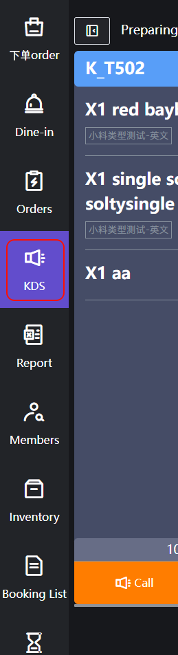 **The KDS end used in the kitchen displays the demand for dishes in the order, replacing the mode of using a printer in the kitchen 给厨房使用的KDS端,显示订单中的菜品需求,取代了厨房使用打印机的模式** ## Operation entrance 操作入口 Successful orders will be displayed in 'KDS' 下单成功的订单都会在‘KDS’内显示