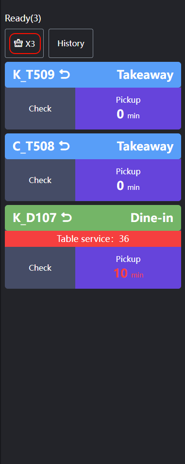 **Pick up the finished product 制作完成的商品进行取餐** ## Operation process 操作流程 #### 1.Orders are picked up separately 订单单独取餐 Find the corresponding order and click 'Pick up' 查找到对应订单,点击‘取餐’  #### 2.Order bulk pickup 订单批量取餐 Click the 'Clear' button to pick up all the 'Pending Orders' orders 点击‘清除’按钮,将‘待取餐’的订单全部取餐