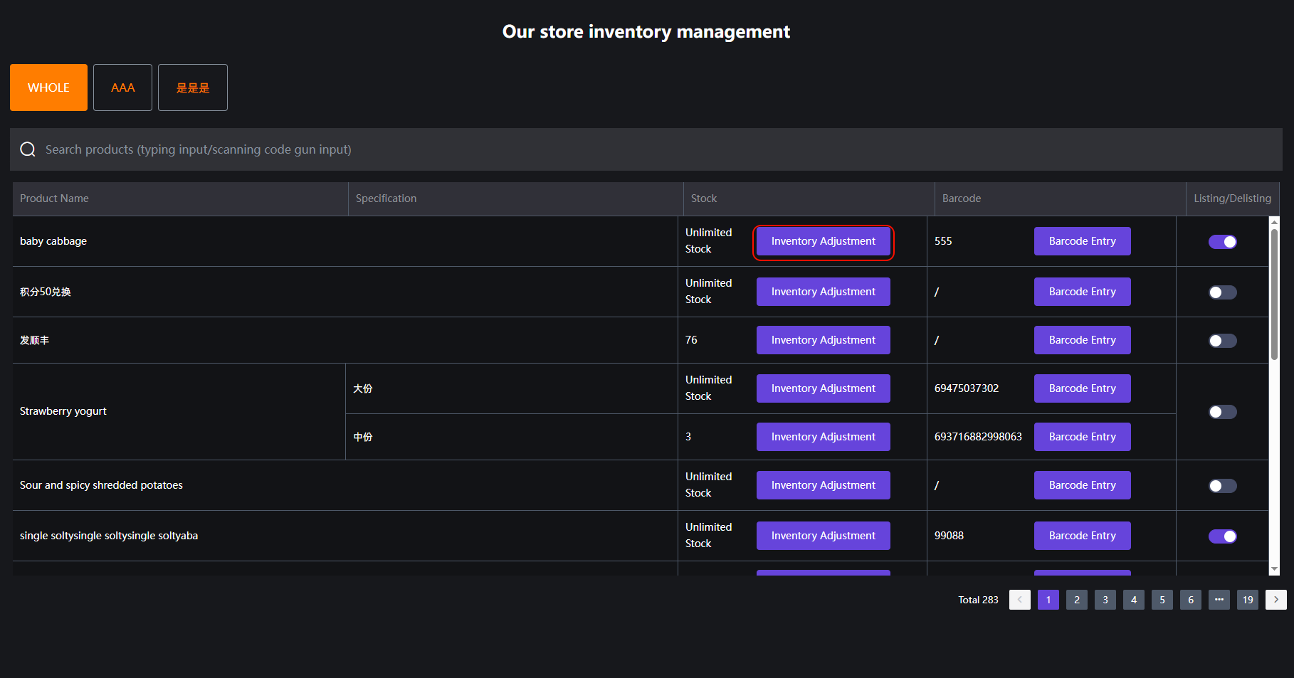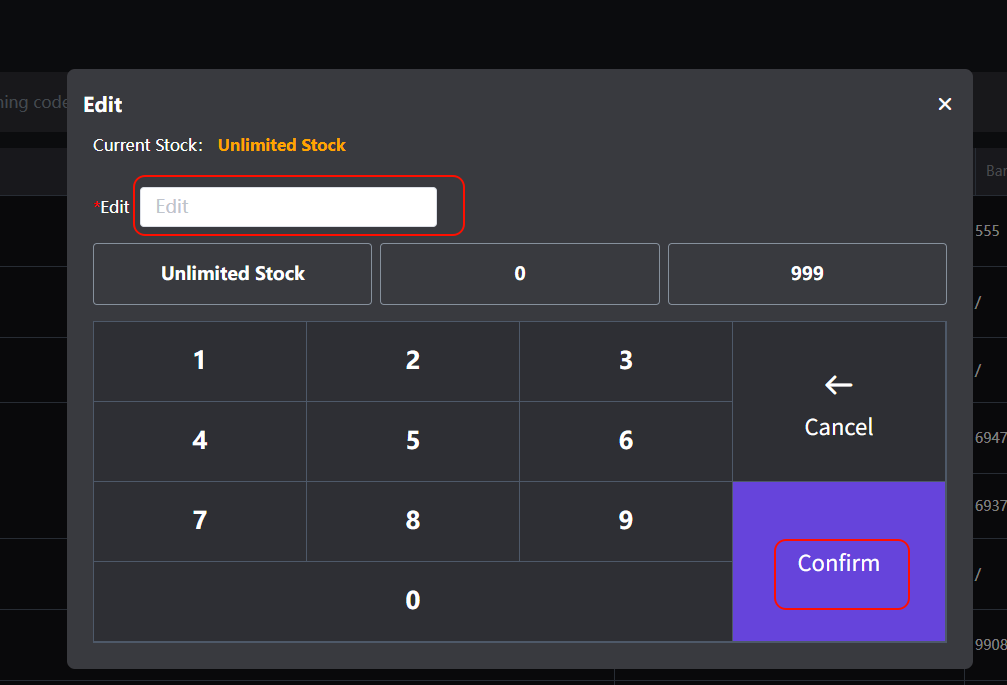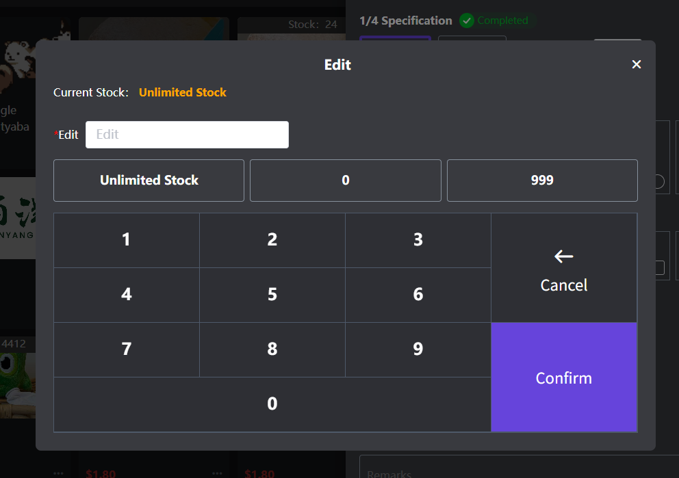 ## Operation process 操作流程 ### 一、Change the inventory of goods 商品更改库存 #### 1.Select Product Interface Change 选择商品界面更改 Click 'Edit' to enter the inventory quantity, and click 'Confirm' to change the inventory successfully 点击‘修改库存’输入库存量,点击‘确认’更改库存成功   #### 2.Inventory changes 库存管理更改 Click on the 'Inventory' menu to find the product that needs to be changed (**you can search for the product name for a quick search**) Click 'Inventory Adjustment', enter the inventory amount, and click 'Confirm' to change the inventory successfully 点击‘库存’菜单,找到需要更改库存的商品(**可搜索商品名称快速搜索**)点击‘库存调整’,输入库存量,点击‘确认’更改库存成功    ### 二、Add material modification 加料更改 Long press the product (with pictures) to pop up. Enter the inventory level and click "Confirm" to successfully change the inventory 长按商品(有图片)跳出,输入库存量,点击‘确认’更改库存成功