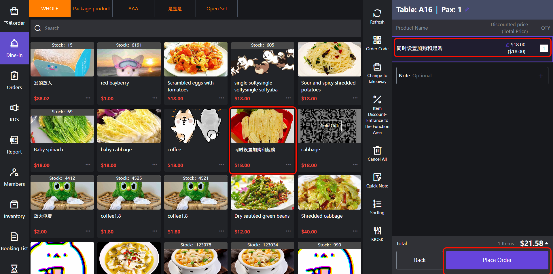 1.1.1 Cash register ordering-packing 收银台点单-打包